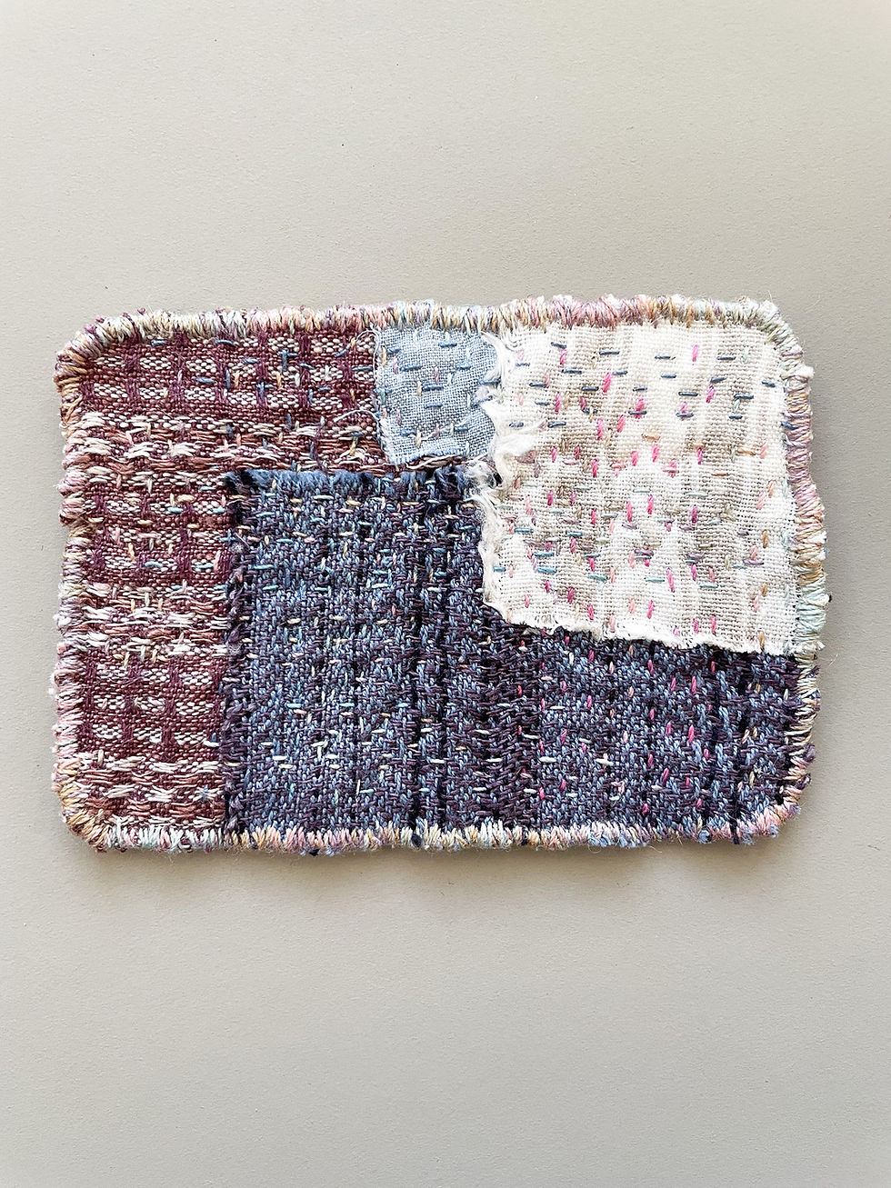 alle micro quilts bestehen aus baumwoll- und leinenstoffresten; gefüllt entweder mit baumwollvlies oder viskosevlies. alles con hand genäht und gequiltet mit unterschiedlichen baumwollgarnen.