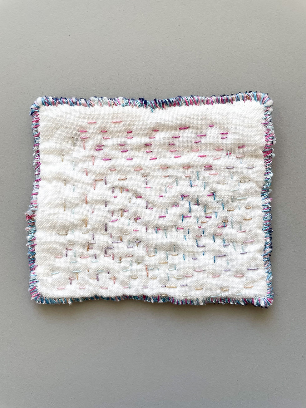 entstanden sind die ersten dieser micro quilts letzten winter, als ich ein dringendes bedürfnis nach weichen texturen für meine hände hatte, aber wenig kapazitäten für größere textilprojekte. gleichzeitig gab es eine sehr experimentierfreudige und inspirierende gruppe in einem meiner workshops, mit wer ich gemeinsam viel zum thema texturen ausprobiert habe. und eines abends waren da als idee diese winzigen quiltchen - angenehm beruhigend für den kopf, schöne gelegenheit auch sehr wnizige stoffrestchen zu verwerten, aufruf zum freudigen und freien experimentieren, und lange dauern sie auch nicht. so wächst die sammlung grade vor sich hin.